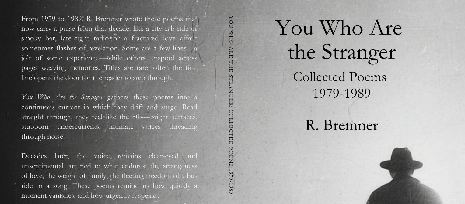 There are poets whose words arrive like carefully folded letters — sealed, deliberate, and intended for a specific audience. And then there are poets like R. Bremner, whose words pour out across years, permeating the open air of life, music, politics, and love. His newly released volume, You Who Are the Stranger: Collected Poems 1979-1989, gathers a decade of his early work — poems once scattered across publications — now brought together here at Westbrae Literary Group.